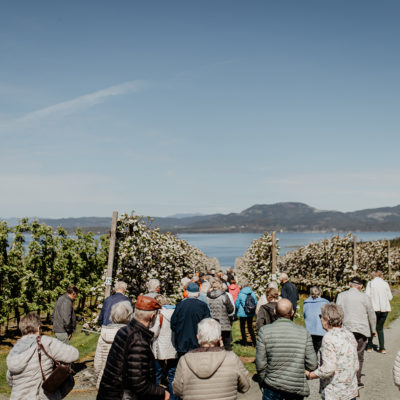 Ønsker du å ta med laget/bedrifta på ein uforgløymeleg dag i fruktbare omgivelsar? Omvisning i frukthagane, få servert nydeleg mat, høyre historie frå øya og smake lokale produkter? Bussen kan køyre til døra, så her kan alle vera med! Minimum 20 personar per gruppe.